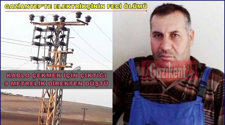 Gaziantep'te kablo çekmek için direğe çıkan elektrik ustası Mehmet Şekeroğlu (49) 9 metre yükseklikten düşerek hayatını kaybetti.