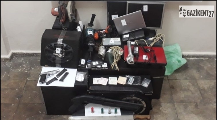 Gaziantep Emniyet Müdürlüğü'nden yapılan açıklamaya göre, Şahinbey İlçe Emniyet Müdürlüğü 25 Aralık Polis Merkezi Uyuşturucu İle Mücadele ve Hırsızlık timleri birlikte operasyon düzenledi. Vatan Mahallesinde Y.D. isimli şüpheli şahsın yapılan üst aramasında, 1, 85 gram esrar ile 1,80 gram metanfetamin uyuşturucu maddesi, ikametinde yapılan aramalarda ise 25 parça elektronik hırsızlık malzemesi, 4 gram esrar maddesi, bir adet tabanca ve bu tabancaya ait 3 adet şarjör ile bir adet pompalı tüfek ele geçirildi. Olayla ilgili gözaltına alınan şüpheli ise "Uyuşturucu Madde Ticareti Yapmak - Hırsızlık Eşya ile 6136 S.K.M." suçlarından hakkında yapılan yasal işlemler sonrası adli makamlara sevk edildi.