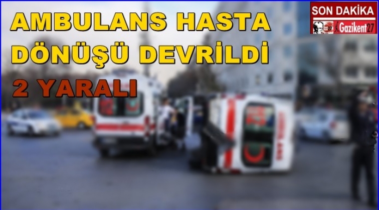 Gaziantep'in İslahiye ilçesinde mülteci kampından hasta götüren ambulans dönüşte kaza geçirerek devrildi. Kazada 2 kişi yaralandı.