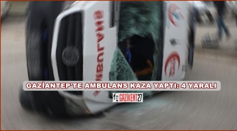 Gaziantep'te, hasta taşıyan ambulans ile otomobilin çarpışması sonucu meydana gelen kazada, 4 kişi yaralandı.