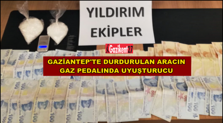 Gaziantep'te polisin şüphe üzerine durdurduğu aracın gaz pedalı altına gizlenmiş uyuşturucu ve para ele geçirildi. Aracın sürücüsü gözaltına alındı.