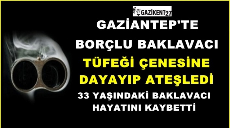 Gaziantep'te, borçları nedeniyle bunalıma girdiği iddia edilen 33 yaşındaki baklava ustası Mustafa T., tüfekle kafasına sıkarak intihar etti.