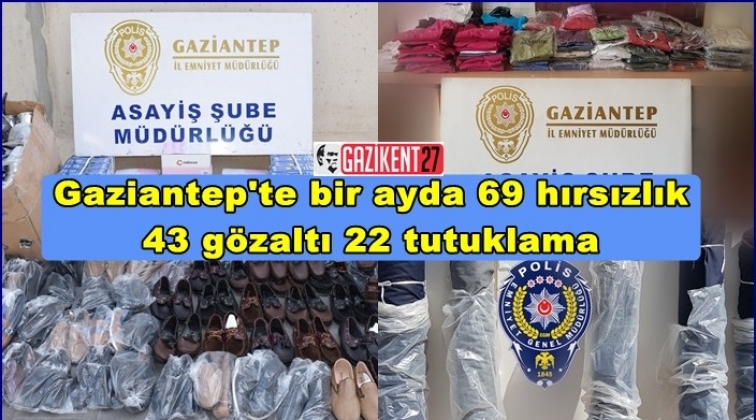 Gaziantep'te, son bir ayda meydana gelen hırsızlık olaylarında gözaltına alınan 43 şüpheliden 22'si tutuklandı.