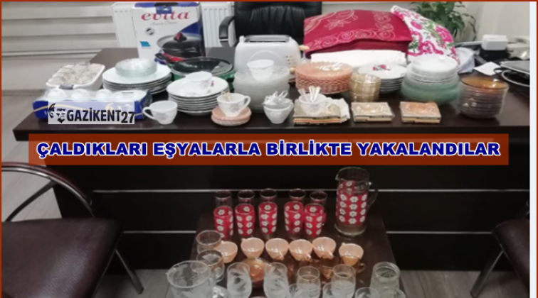 Gaziantep Emniyet müdürlüğü'nden yapılan açıklamaya göre, Şahinbey İlçe Emniyet Müdürlüğü Düztepe Şehit Hüseyin Cengiz Polis Merkezi Amirliği ekipleri, hırsızlık olaylarının firari şüphelilerine yönelik operasyon düzenledi. İkametten hırsızlık olayının firari şüphelileri A.D. ile F.B.A. isimli 2 şüpheli şahıs çaldıkları toplam 167 parça çeyiz eşyası birlikte yakalandı. Ele geçirilen çeyiz eşyaları sahibine teslim edildi. Şüpheli şahıslar haklarında yapılan yasal işlemler sonrası adli makamlara sevk edildi. Ekipler ayrıca, Nitelikli Hırsızlık - Konut Dokunulmazlığını İhlal olayının firari şüphelisi H.K.'yı çaldığı bebek arabası ile yakalandı. Ele geçirilen bebek arabası sahibine teslim edildi. Şüpheli şahıs hakkında yapılan yasal işlemler sonrası adli makamlara sevk edildi.