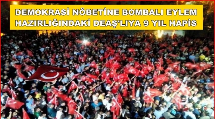 Gaziantep'te terör örgütü DEAŞ'a ilişkin davada, 15 Temmuz darbe girişiminin yıl dönümündeki demokrasi nöbetine yönelik bombalı eylem düzenleyeceği iddia edilen tutuklu sanığa 9 yıl hapis cezası verildi.