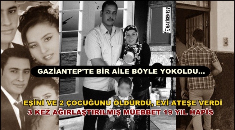 Gaziantep’te eşini ve iki kızını öldürüp, oğlunu yaralayan, ardından evini ateşe verip, bileklerini keserek intihara kalkışan Mustafa Öztürkmen (33), 3 kez ağırlaştırılmış ömür boyu ile 19 yıl hapis cezasına çarptırıldı.