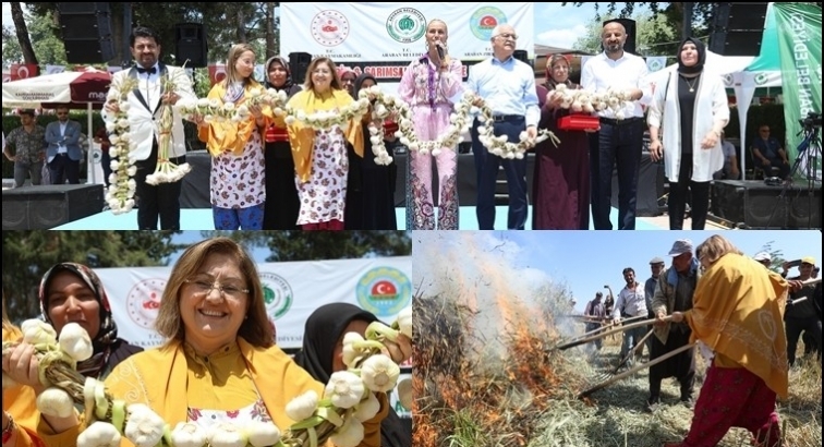 ‘Beyaz Altın’ olarak adlandırılan sarımsak hasadında kadın çiftçilerle sarımsak toplayan Başkan Fatma Şahin daha sonra buğdayların firiğe dönüştürüldüğü ütme işlemi öncesi tarlada buğday saplarını yaktı.