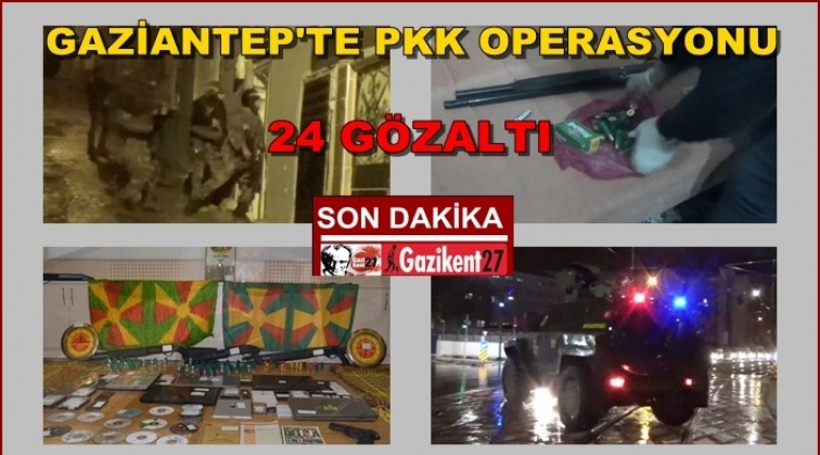 "İl Emniyet Müdürlüğümüz ekiplerince il merkezi ve Nizip ilçemizde insansız hava aracı desteğiyle gerçekleştirilen operasyonda: PKK/KCK Terör örgütünün gençlik yapılanması (DGH) adına faaliyetlerde bulunduğu, sosyal medya üzerinden terör örgütünün propagandasını yaparak Türkiye Cumhuriyeti Cumhurbaşkanına ve güvenlik güçlerine hakaret ettiği, provokatif eylemlerle müzahir kitleyi provoke ederek kanunsuz eylemlere yönlendirebileceği değerlendirilen (24) şüpheli şahıs yakalanarak gözaltına alınmış ve haklarında adli işlem başlatılmıştır. Operasyon kapsamında yapılan aramalarda; (5) adet av tüfeği ve (76) adet fişek, (1) adet kurusıkı tabanca, (2) adet tabanca şarjörü, (6) adet örgütsel içerikli yasak yayın (kitap) (14) adet terör örgütünü simgeleyen materyal ile çok sayıda dijital materyal ele geçirilmiştir.