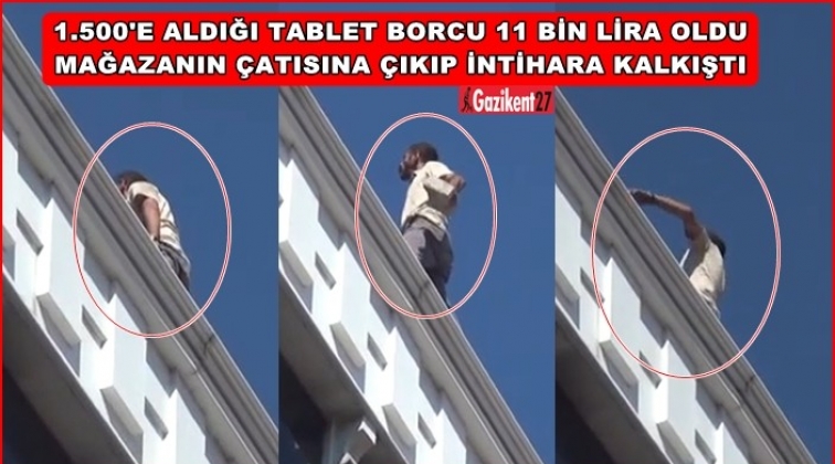 Edinilen bilgiye göre olay, bugün öğleden sonra Gaziler Caddesi'nde meydana geldi. 43 yaşındaki Mehmet C., Evkur mağazasından açık hesapla aldığı bin 500 liralık tablet bilgisayarın borcunu ödeyemedi. Borcunun faizle 11 bin liraya çıktığını öğrenen Mehmet C., 4 katlı mağazanın çatısına çıkarak intihara kalkıştı. İhbar üzerine olay yerine itfaiye, sağlık ve çok sayıda polis ekibi sevk edildi. Mehmet C.'yi polis ikna edemeyince psikolog çağrıldı. Psikologun konuştuğu Mehmet C., 3 saatin sonunda ikna olup intihar girişiminden vazgeçti. Mehmet C., polis merkezine götürüldü.