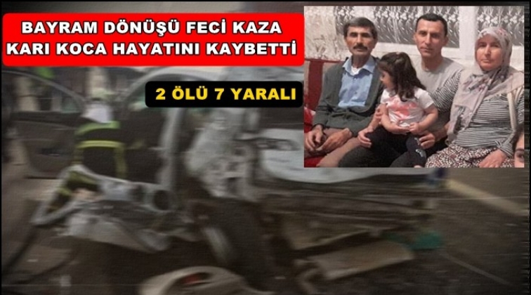Gaziantep'in Nurdağı ilçesinde 2 otomobilin kafa kafaya çarpışması sonucu Nevzat Kısacık (59) ile eşi Sultan Kısacık (55) yaşamını yitirdi. Feci kazada 7 kişi de yaralandı.