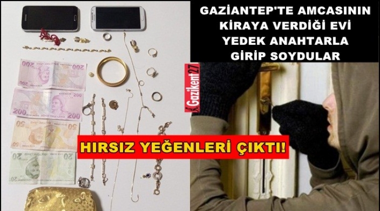 Gaziantep'te, amcalarının kiraya verdiği eve giren iki kardeş evdeki 5 bilezik, 4 kolye parçası, 7 yüzük, 1 çift küpe, 2 cep telefonu ve 470 lira para çaldı. Operasyonla yakalanan kardeşler H.K. ve C.K. sevk edildiği mahkemece tutuklandı.