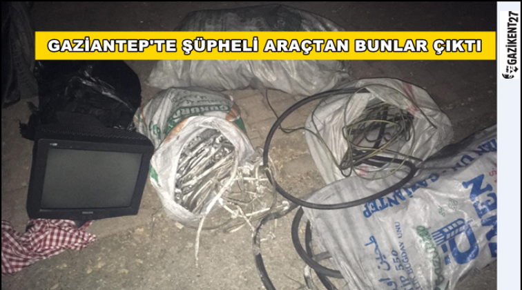 Gaziantep Emniyet Müdürlüğü'nden yapılan açıklamaya göre, Şahinbey İlçe Emniyet Müdürlüğü ekipleri, Kavaklık Mahallesi'nde durumundan şüphelendiği bir otomobili durdurdu. Otomobilde arama yapan ekipler, 3 torba içerisinde 60 kilo elektrik kablosu, 3 torba kömür, 1 bilgisayar monitörü, 1 testere ve 1 çekiç ele geçirdi. Çalıntı olduğu belirlenen malzemelere el koyan polis M.A.H. ve A.A.'yı gözaltına aldı.