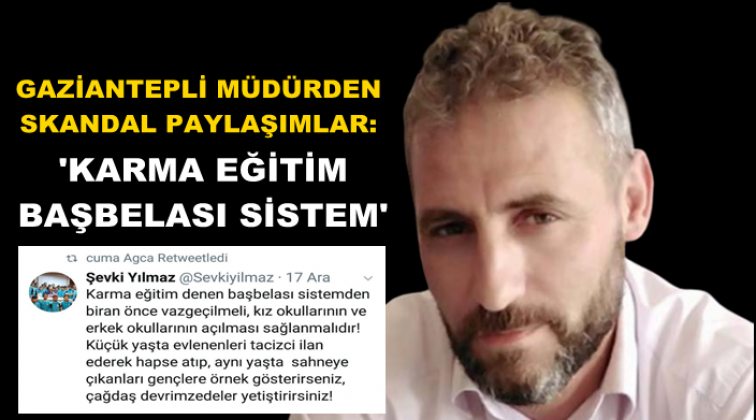 Gaziantep'te bir ilkokulda müdürlük yapan Cuma Ağca, 'karma eğitimin baş belası' olduğunu savunan paylaşımda bulundu.