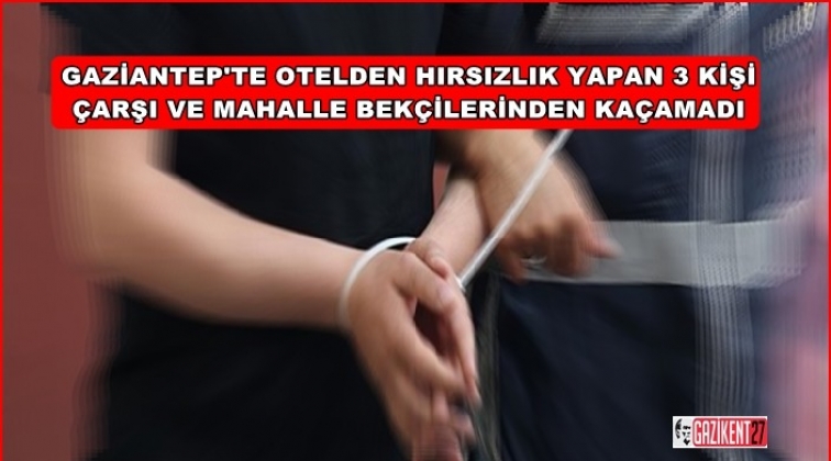 Gaziantep'te çarşı ve mahalle bekçileri bir otele girip hırsızlık yaparak kaçan 3 kişiyi operasyonla yakaladı.