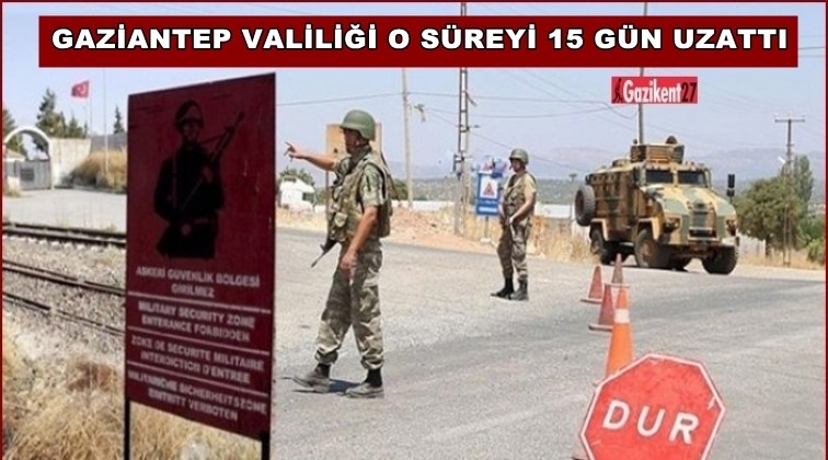 Gaziantep Valiliği, Suriye sınırında 'özel güvenlik bölgesi' uygulamasının 15 gün daha uzatıldığını duyurdu.