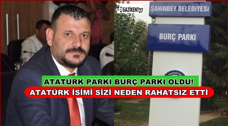 Gaziantep'in Şahinbey İlçesi Burç Mahallesi'ndeki Atatürk Parkı'nın ismi Burç Parkı olarak değiştirildi. CHP Şahinbey Belediye Meclis üyesi Hasan Şencan, yazılı soru önergesi vererek parkın isminin neden değiştirildiğini sordu.