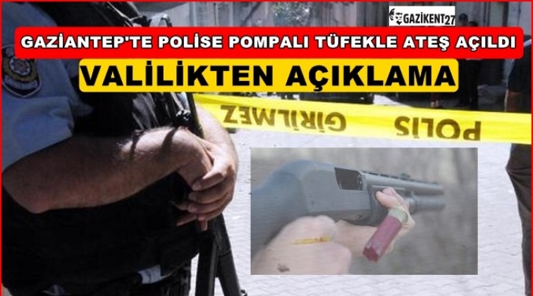 Gaziantep valiliği'nden yapılan açıklamada, "Bugün saat 13:00 sıralarında Şahinbey İlçemiz Vatan Mahallesinde meydana gelen kavgaya müdahale etmek üzere olay yerine giden polis ekibine kimliği belirsiz kişilerce pompalı tüfekle saldırı gerçekleştirilmiştir. Olay sonrasında motosikletle uzaklaşan M.K. ve N.Ö isimli şüpheli şahıslar yapılan takip neticesinde bir adet pompalı tüfekle birlikte yakalanarak gözaltına alınmışlardır. Şahısların yapılan üst aramasında bir adet pompalı tüfeğin yanı sıra 3 adet dolu fişek ve 1 adet bıçak ele geçirilmiştir. Olayda bir ekip otosu hasar görmüş olup; herhangi bir yaralı veya can kaybı bulunmamaktadır. Konu ile ilgili olarak adli tahkikat devam etmektedir." denildi.