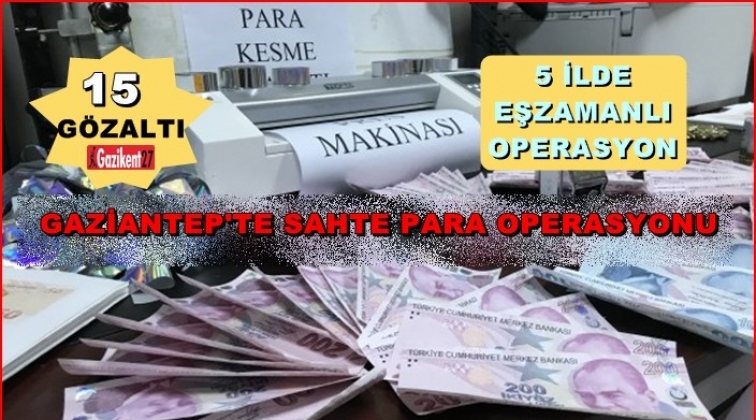 Gaziantep'in de aralarında bulunduğu İstanbul merkezli beş ilde sahte para basan suç örgütüne yönelik operasyonda 15 kişi gözaltına alındı.