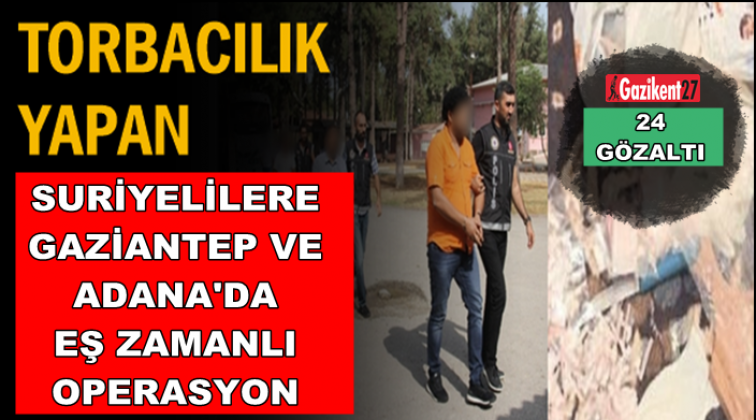 Gaziantep ve Adana'da torbacı oldukları iddia edilen Suriyelilere yönelik yapılan eş zamanlı operasyonlarda 24 kişi gözaltına alındı.