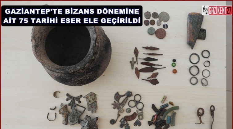 Gaziantep Emniyet Müdürlüğü'nden alınan bilgiye göre, Şehitkâmil İlçesi Güvenevler Mahallesi'nde bulunan bir ikamete yapılan operasyonda, Bizans dönemine ait 75 adet tarih eser ele geçirildi. Olayla ilgili 1 şüpheli şahıs yakalanarak gözaltına alındı. Şüpheli şahıs hakkında yapılan yasal işlemler sonrası adli makamlara sevk edildi.