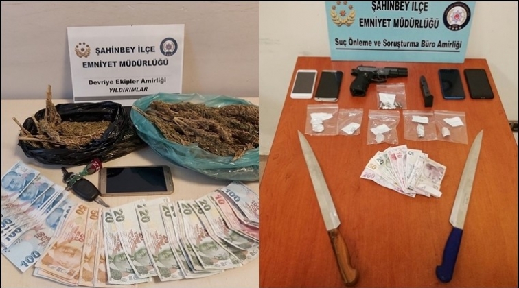Şahinbey İlçe Emniyet Müdürlüğü ekiplerinin, 1 araç, 1 ikamet ve 4 şüpheli şahıs üzerinde yaptığı aramada, 604.01 gram uyuşturucu madde, 1 adet kurusıkı tabanca, 5 adet fişek ve 2 adet kesici alet ele geçirildi. Şüpheliler hakkında adli işlemler sürüyor.