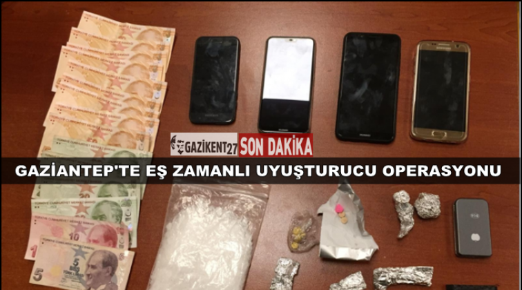 Gaziantep Emniyet Müdürlüğü'nden yapılan açıklamaya göre, Şahinbey İlçe Emniyet Müdürlüğü ekipleri, uyuşturucu satıcılarına yönelik Nuri Pazarbaşı Mahallesi'nde, bazı adreslere eş zamanlı operasyon düzenledi. Operasyonda, A.K, S.K. ve F.K. gözaltına alındı. Adreslerde yapılan aramalarda, 119,38 gram sentetik uyuşturucu, 12 uyuşturucu hap, hassas terazi ve uyuşturucu satışından elde edildiği düşünülen 545 lira ele geçirildi. Adliyeye sevk edilen zanlılar, çıkarıldıkları nöbetçi sulh ceza hakimliğince "uyuşturucu temin etmek ve satmak" suçundan tutuklandı.