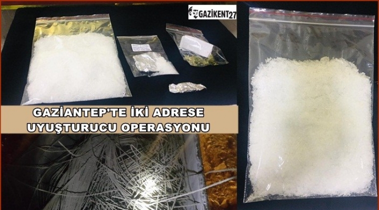 Gaziantep Emniyet Müdürlüğü'nden yapılan açıklamaya göre, Asayiş Şube Müdürlüğü ekipleri, Pirsultan Mahallesi'nde uyuşturucu ticareti yapıldığı belirlenen bir adrese operasyon düzenledi. Adreste ve bir otomobilde yapılan aramada satışa hazır yaklaşık 210 gram metamfetamin, 1,6 gram esrar ele geçirildi. Ayrıca Eyüpsultan Mahallesi'nde durumundan şüphelenilerek durdurulan M.S ve M.Ş.H'nin üzerinde yapılan aramada ise 14.4 gram eroin, 0.7 gram bonzai, 0.3 gram metamfetamin ile 0.9 gram esrar ele geçirildi. Malzemelere el koyan polis, M.K.H., İ.K., M.S. ve M.Ş.H.'yi gözaltına aldı. Emniyetteki işlemlerinin tamamlanmasının ardından adliyeye sevk edilen şüphelilerden M.K.H. tutuklandı, diğer şüpheliler ise adli kontrol şartı ile serbest bırakıldı.