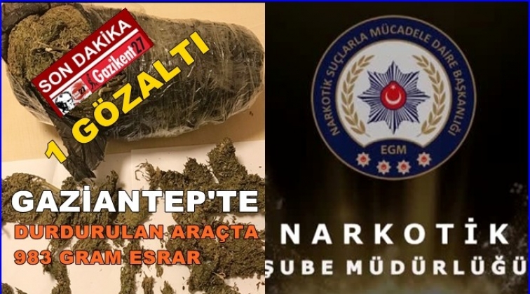 Gaziantep'te polisin durumundan şüphelenerek durdurduğu ticari araçta yapılan aramada 983 gram esrar ele geçirildi. Olayla ilgili yabancı uyruklu 1 kişi gözaltına alındı.