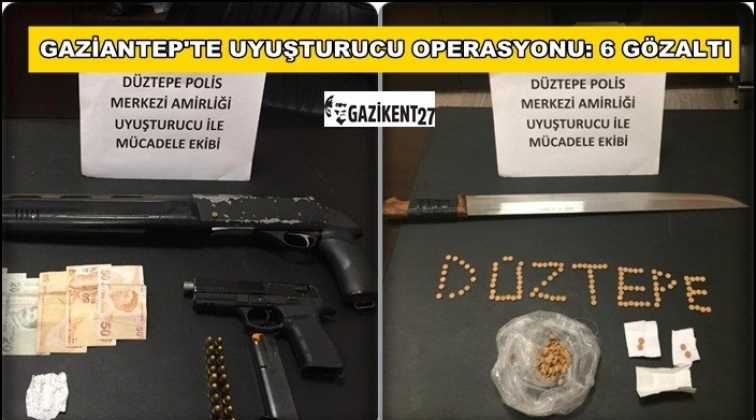 Gaziantep Emniyet müdürlüğü'nden yapılan açıklamaya göre, Düztepe, Güneş ve İnönü Mahallelerinde polisin uyuşturucu operasyonlarında toplam 6 kişi gözaltına alındı. Emniyetten yapılan açıklama şöyle: