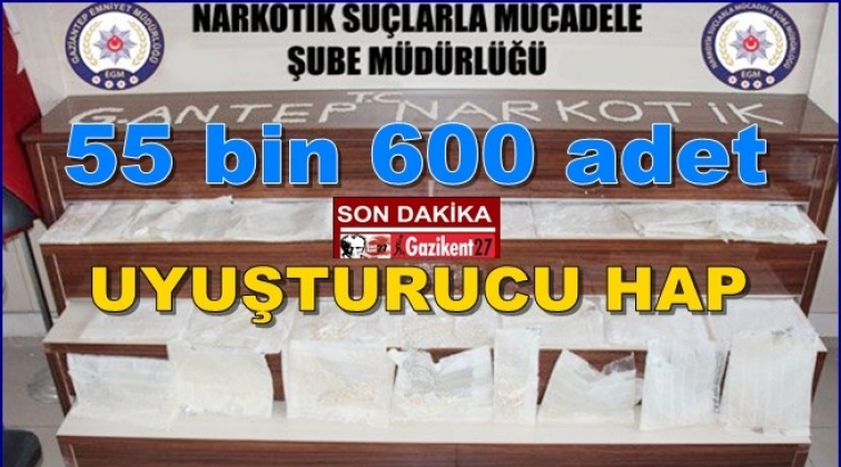 Gaziantep'in İslahiye ilçesi ile Hatay'ın İskenderun ilçesinde düzenlenen eşzamanlı uyuşturucu operasyonunda 55 bin 600 adet uyuşturucu hap ele geçirildi.