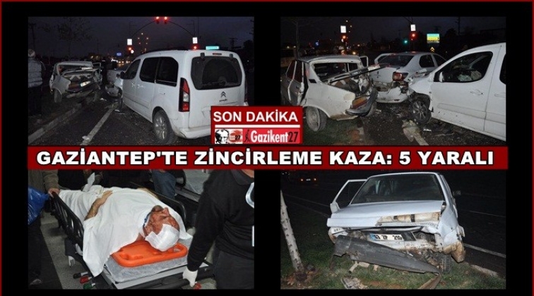 Gaziantep'te meydana gelen 5 aracın birbirine girdiği zincirleme trafik kazasında 5 kişi yaralandı.