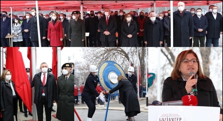 Atatürk anıtına çelenklerin bırakılmasıyla başlayan törende, Türkiye Büyük Millet Meclisi (TBMM) tarafından Gaziantep'e verilen İstiklal Madalyası, Büyükşehir Belediye Başkanı Fatma Şahin ve protokol üyeleri tarafından Türk bayrağına takıldı. Törene GBB Başkanı Fatma Şahin’in yanı sıra Gaziantep Vali Yardımcısı Muhammet Önder, 5. Zırhlı Tugay ve Garnizon Komutanı Tuğgeneral Hacı Halil Osman, Gaziantep milletvekilleri, protokol üyeleri, adli mülki ve askeri erkan, kamu kurum ve kuruluşları, sivil toplum kuruluşları, şehit aileleri, gazi dernek üyeleri ve vatandaşlar katıldı.