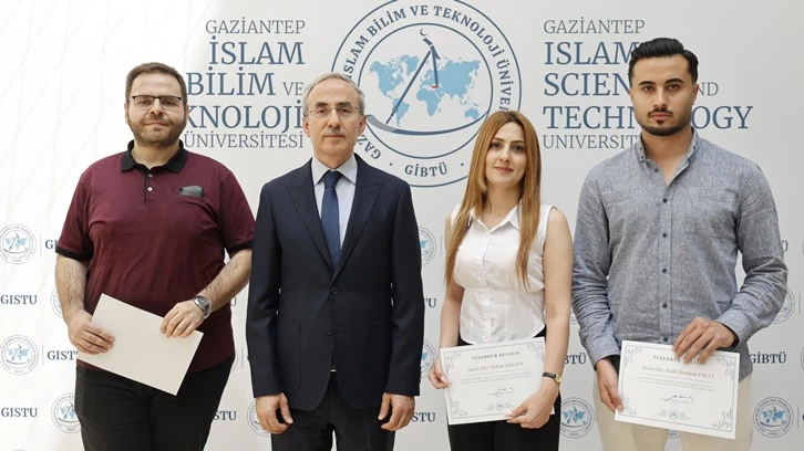TÜBİTAK 2209-A Üniversite Öğrencileri Araştırma Projeleri Destekleme Programı 2024 yılı 1.dönem çağrısı kapsamında Gaziantep İslam Bilim ve Teknoloji Üniversitesi’nden destek hakkı kazanan öğrencilere ve danışman öğretim üyelerine GİBTÜ Rektörü Prof. Dr. Şehmus Demir tarafından başarı belgeleri verildi.