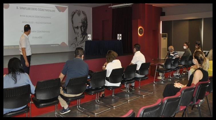 Gaziantep Kolej Vakfı Özel Okullarında düzenlenen 8. sınıflar akademik çalışma programı tanıtım toplantısında Okul Müdürü Seçil Güldemet pandemi sürecinde gerçekleştirilecek olan uygulamalar hakkında bilgiler vererek öğrencileri alınan tedbirlere uymaları yönünde uyardı.