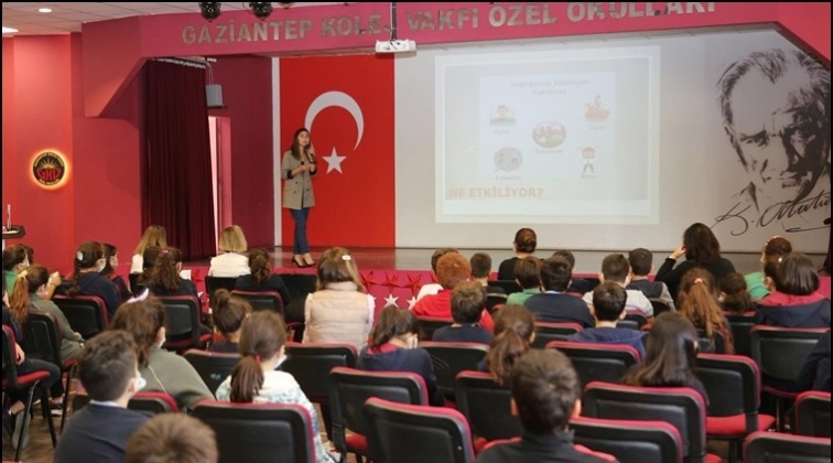 Gaziantep Kolej Vakfı Özel Okullarında gerçekleştirilen Sağlıklı Beslenme ve Duygusal Yeme konulu seminerde Beslenme ve Diyet Uzmanı Işıl Canbolat öğrencilerle buluştu. Sağlıklı beslenmenin önemine değinen Canbolat öğrencilerin konuyla ilgili sorularını da yanıtladı.