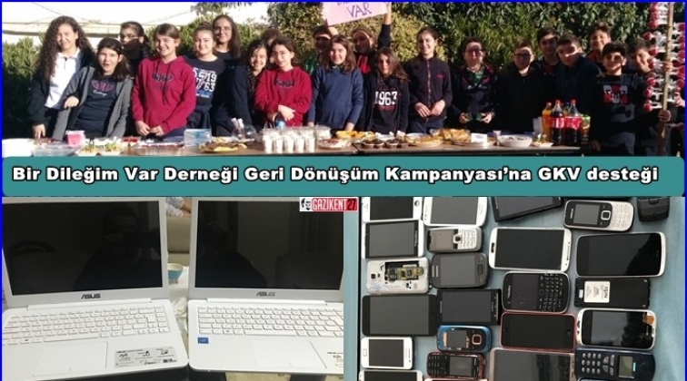 Bir Dileğim Var Derneği tarafından ülke genelinde sürdürülen “Geri Dönüşüm Kampanyasına destek veren Gaziantep Kolej Vakfı Özel Okulları öğrencileri kampanya kapsamında hem ev ve iş yerlerinde atıl halde bulunan cep telefonu, laptop ve tabletleri toplayarak geri dönüşüme kazandırılması ve geri dönüşümde atıklar içerisinde bulunan altın, gümüş, palladium ve cadmium gibi değerli madenlerin ayrıştırılmasıyla elde edilecek olan katma değerin kampanyada kullanılması için kolları sıvadı. Gaziantep Kolej Vakfı Özel Ortaokulu öğrencileri ve veliler de bu projeye katkı sağlamak amacıyla GKV Özel Liseleri Matematik Öğretmeni Murat Sadık Öngen rehberliğinde evlerinde kullanılmayan elektronik cihazları bir araya getirerek derneğe gönderdi. Diğer taraftan GKV Özel Ortaokulu 7A ve 7C sınıfı öğrencileri de düzenledikleri kermesle elde ettikleri geliri derneğin belirlediği 2 çocuğa yeni laptop ve yeni kıyafetler almak için kullanarak hediyeleri çocuklara teslim etmek kaydıyla derneğe yolladılar. GKV Özel Liseleri öğrencileri de farklı etkinlikler sonucu elde ettikleri geliri Bir Dileğim Var Derneği’nin hesabına nakit olarak yatırarak projeye önemli destek sağladı. Birçok sosyal sorumluluk projesine destek sağlayan Gaziantep Kolej Vakfı Özel Okullarının öğrencileri önümüzdeki süreçte de benzeri kampanyaları yürüteceklerini ifade etti.