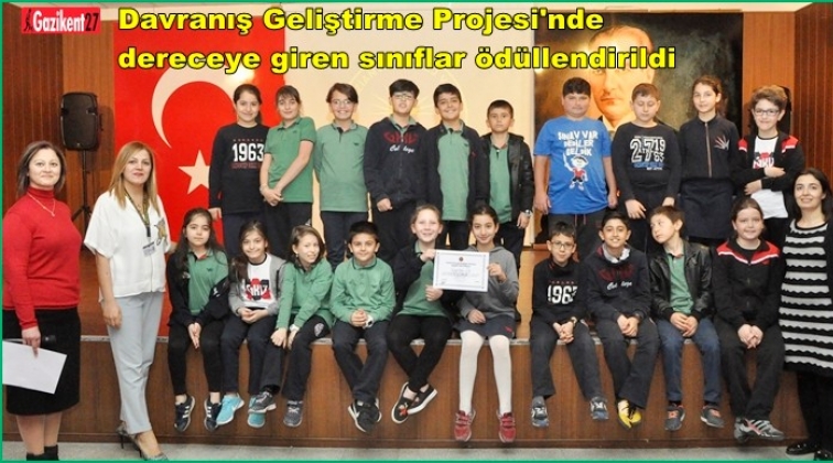 Gaziantep Kolej Vakfı Özel Okulları Rehberlik Servisi tarafından yürütülmekte olan Davranış Geliştirme Projesi kapsamında düzenlenen törenle dereceye gider sınıflar ödüllendirildi. GKV Özel Okulları Rehber Öğretmeni Nevra Erserim projenin başarıyla uygulandığını ifade etti.