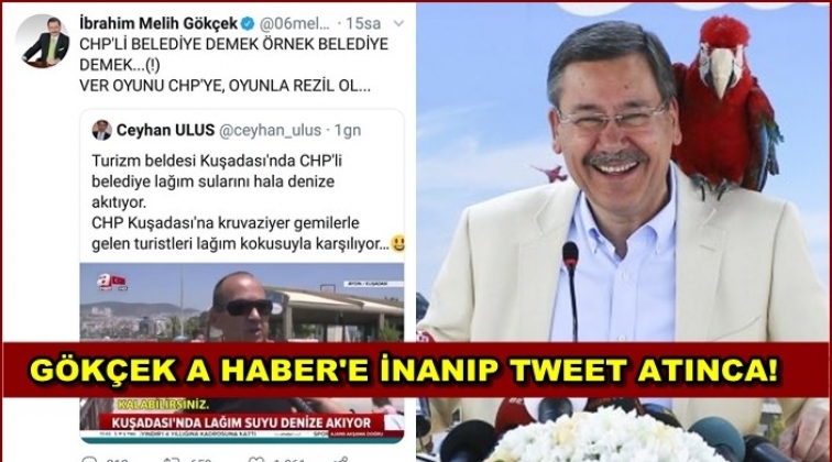 Gökçek’in Kuşadası’ndaki kötü kokuyla ilgili haberi Twitter hesabından paylaşarak “CHP Belediyesi demek örnek belediye demek. Ver oyunu CHP’ye oyunla rezil ol” demesi tepki çekmişti.