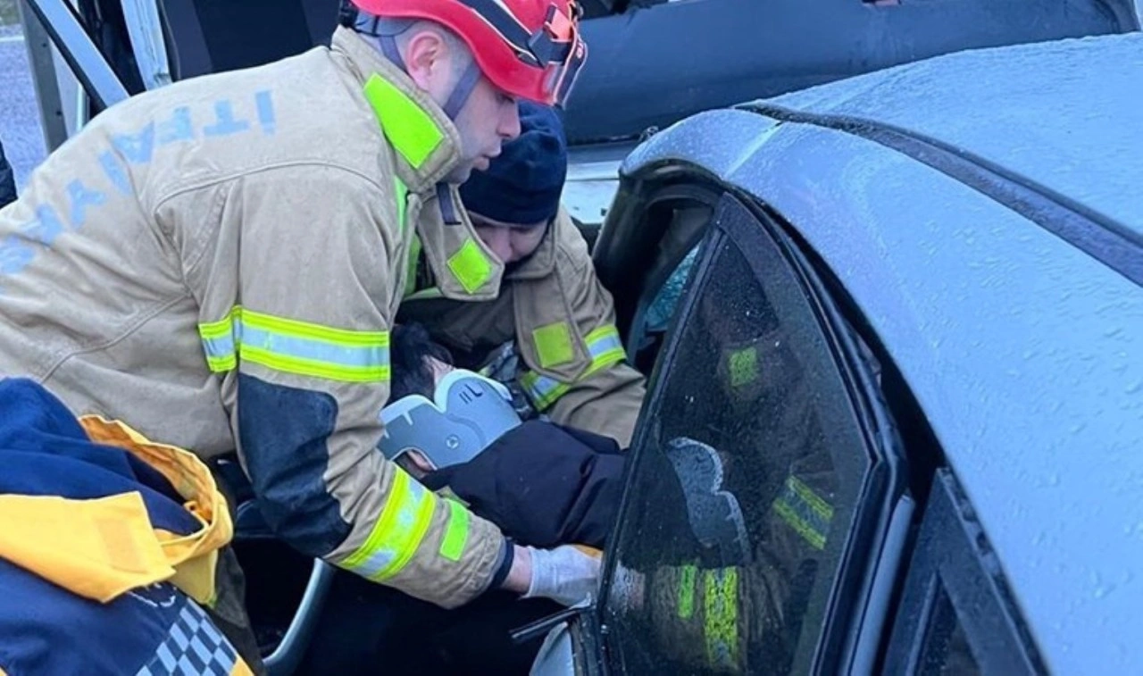 Karşı şeride geçen kamyonet, Yusuf Şenyıldız'ın (23) kullandığı 35 AEM 713 plakalı otomobille kafa kafaya çarpıştı. Kazada otomobilde sıkışan Şenyıldız ağır, H.Y. ise hafif yaralandı.