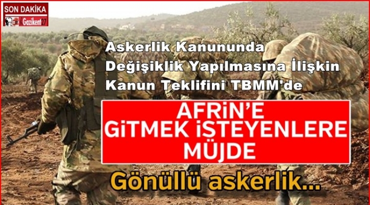 Teklifin gerekçesinde şöyle denildi; “Ülkemizin içinde bulunduğu terör tehdidi ve olası savaş durumu dikkate alınarak gönüllü asker olmak isteyenlerin askere gitmeleri için vermiş olduğumuz bu kanun teklifi ülkemizin bu zor günlerin üstesinden gelmesi adına yerinde bir adım olacaktır.”