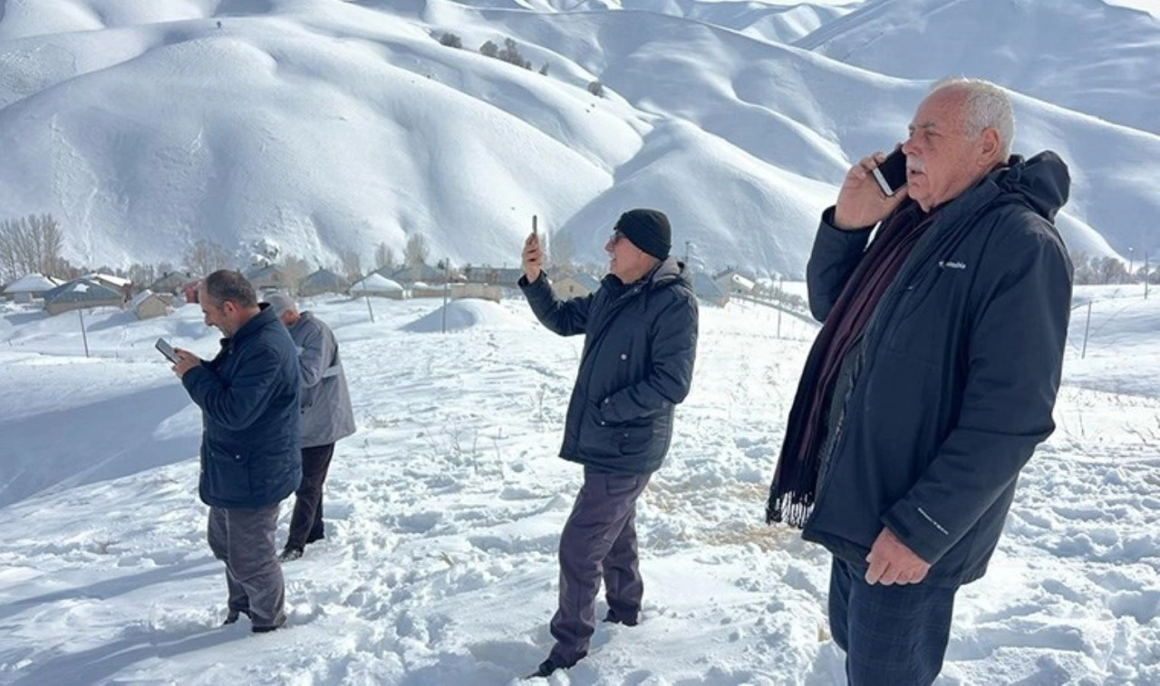 Yüksekova ilçe merkezine 20 kilometre uzaklıkta bulunan Gürkavak köyünün 40 haneli Yeşildere mezrasında yaşayanlar, telefonla konuşmak için karlı yollardan geçerek yüksek tepeye çıkıyor.