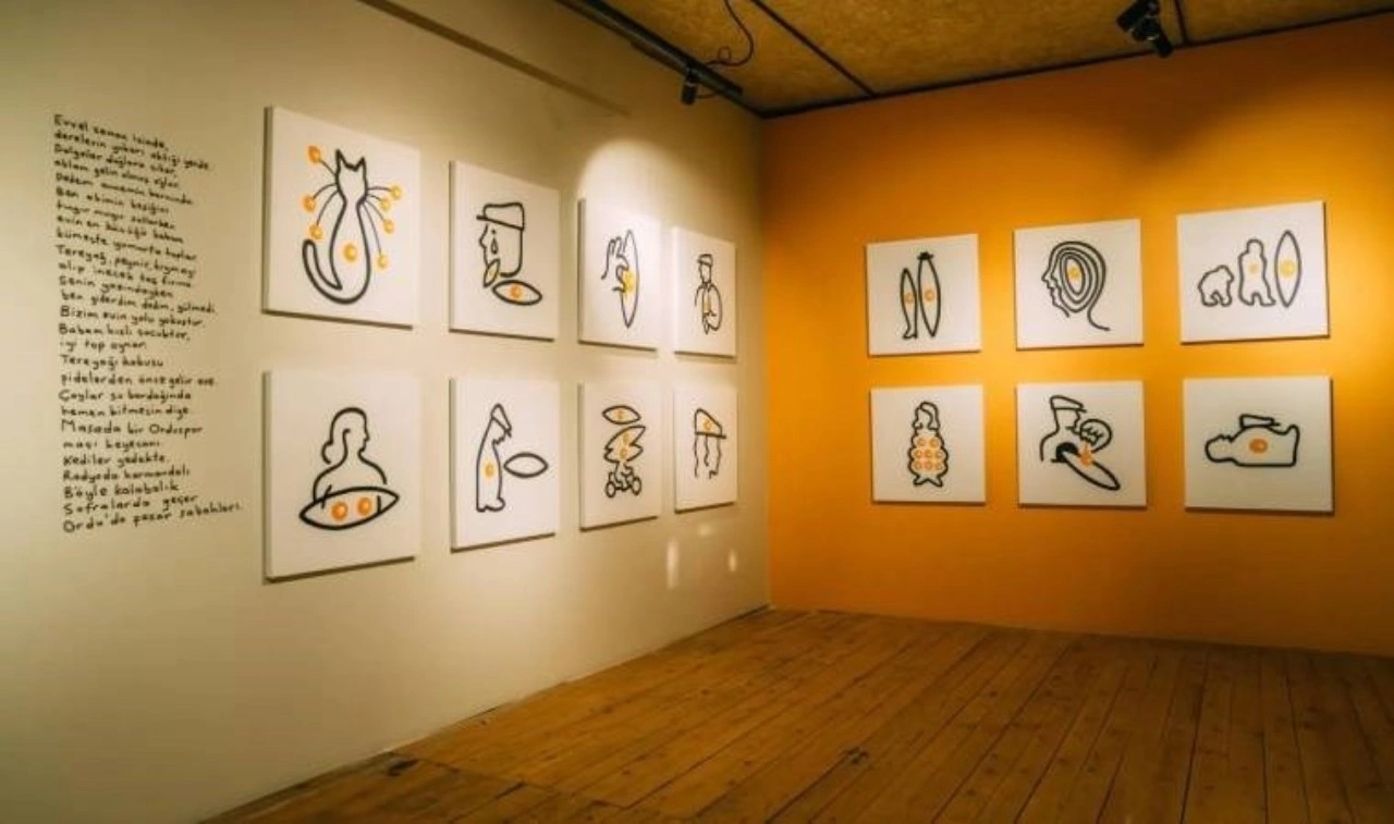 Sergideki eserlerde hayvanlara, günlük yaşamdan izlere, insanın düşünsel süreçlerine önemli bir yer ayrılmış. Ataoğlu eserleri, A4 kâğıtlarına hobi olarak çizdiğini belirterek serginin hikâyesini de şöyle anlatıyor: “Serginin proje yönetmenliğini üstlenen Hande Bilten ile karşılaştıktan sonra bu işin büyütülebileceğini, sergiye evrilebileceğini söyledi. Beni kalem kâğıttan kurtardı, tablet ile dijital çizmeye başladım.”