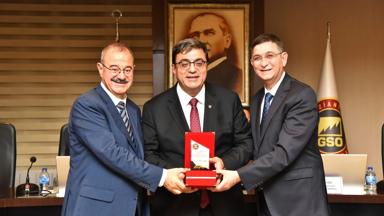 Konuşmaların ardından, Asko Glob All Marketing firmasının, TOBB öncülüğünde hazırlanan Türkiye’nin en hızlı büyüyen 100 şirketi arasında yer almasından dolayı, GSO Meclis Üyesi Sami Konukoğlu’na plaket takdiminde bulunuldu.