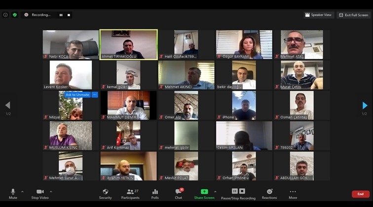 Covid-19 tedbirleri kapsamında ortak meslek komite toplantısını yüz yüze yapamadıklarını aktaran Akıncı, “Gönül isterdi ki geçmiş yıllarda olduğu gibi toplantımızı yüz yüze müşterek yapalım fakat gerek sizlerin gerekse de işletme çalışanlarınızın ve ailelerinizin sağlığını riske etmemek adına toplantımızı dijital ortamda gerçekleştirmeyi tercih ettik. İnşallah en kısa süre içerisinde bu salgın illetinden kurtularak, görüşmelerimizi yüz yüze daha verimli ve sağlıklı bir şekilde düzenleriz” dedi.