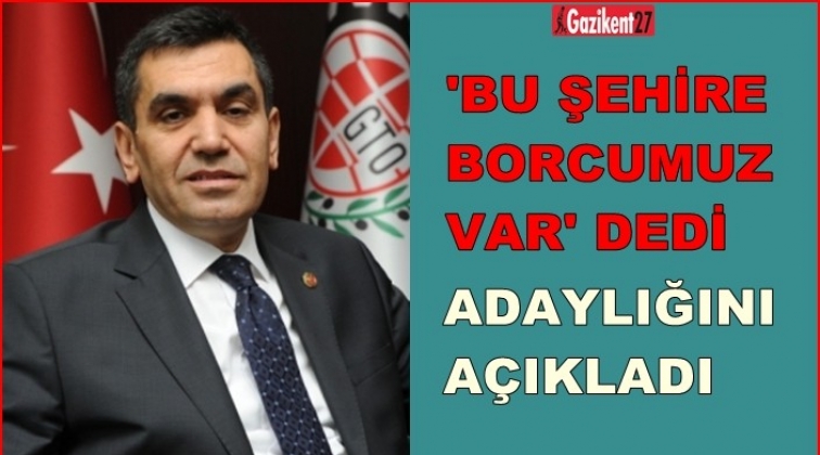 “2009 yılından beri şerefle hizmet ettiğim, 26 Aralık 2016 tarihinden bu yana da Yönetim Kurulu Başkanlığı'nı yaptığım ve bu yıl kuruluşunun 120. yılını kutladığımız örnek oda Gaziantep Ticaret Odası'na yönetim kurulu başkanlığına oda ve meclis üyelerimizin genel teveccühü ve isteği üzerine ekibimle birlikte yeniden adayım. Yönetim Kurulu olarak görev yaptığımız 15 ay boyunca hep yükselen değer Gaziantep'imize hizmet ettik. Üyelerimizin ticaretine, üretimine ve sosyal yaşamlarına katkıda bulunmak için daha neler yapabiliriz dedik ve birçok projeyi hayata geçirdik. Allah kısmet ederse yeni ve güçlü projelerimizle yeniden yönetime gelmek istiyoruz. Bizler 15 ay boyunca tüm üyelerimizin görüş ve önerileri doğrultusunda hep birlik, beraberlik ve ortak akılla hareket ettik. Oda meclisimiz ve komitelerimizle aktif olarak çalıştık. Arkadaşlarımızla beraber bugün ülkemizin içinde bulunduğu hassas dönemi de göz önünde bulundurduğumuzda, Gaziantep Ticaret Odası'nda olmak ve 15 ay boyunca oluşturduğumuz birlik ve beraberlik ruhuyla hizmete devam etmek istiyoruz. Bizler, Atatürk'ün bize emanet ettiği bu Cumhuriyeti daha da yukarılara çıkarmak, üretim gücümüzü artırmak, "Dünyada güçlü bir Türkiye, Türkiye'de güçlü bir Gaziantep" yaratmak için 15 Temmuz ruhuyla "Gelin birlikte çalışalım" diyoruz. Bu şehre borcumuz var.”
