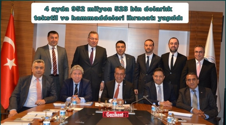Nisan ayında yapılan Güneydoğu Anadolu Tekstil ve Hammaddeleri İhracatçıları Birliği Seçimli Olağan Genel Kurulunda Başkan seçilen Ahmet Fikret Kileci, bölgeden bu yılın ilk 4 aylık diliminde 952 milyon 528 bin dolarlık tekstil ve hammaddeleri ihracatı gerçekleştirildiğini belirtti.