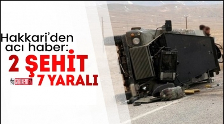 Hakkari'nin Şemdinli ilçesi Samanlı Köyü´nde askeri aracın devrilmesi sonucu 2 asker şehit oldu. Aynı araçta 7 askerin yaralı olduğu öğrenildi.