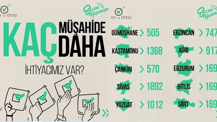 Cumhurbaşkanlığı seçiminin ikinci turuna hazırlanırken, sandıklarda müşahit ve görevli ihtiyacı olduğu ortaya çıkmıştı. Oy ve Ötesi, hangi ilde kaç müşahit ihtiyacı olduğunu tek tek paylaştı.