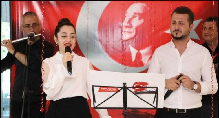 Hastanenin lobisinde gerçekleştirilen diğer etkinlikte ise hastanede görev yapan hemşireler R. Ezgi Güçer ile Mustafa İlhan, Atatürk’ün sevdiği şarkılardan oluşan repertuvarlarıyla canlı müzik dinletisi gerçekleştirdi. 19 Mayıs’ta fark yaratarak misafirlere hoş bir ambiyans yaşatan hemşirelerin şarkılarına çalışanlar ve misafirler bayraklarla eşlik ettiler.