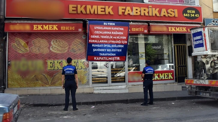 Şahinbey Belediyesi, halk sağlığını tehdit eden işletmelere karşı denetimlerini sürdürüyor. Zabıta Müdürlüğü ekipleri, ilçede faaliyet gösteren ve daha önce birçok kez hijyen ve temizlik kurallarına uymadığı için uyarılan bir fırının iş yeri ruhsatını iptal ederek işletmeyi süresiz olarak kapattı.